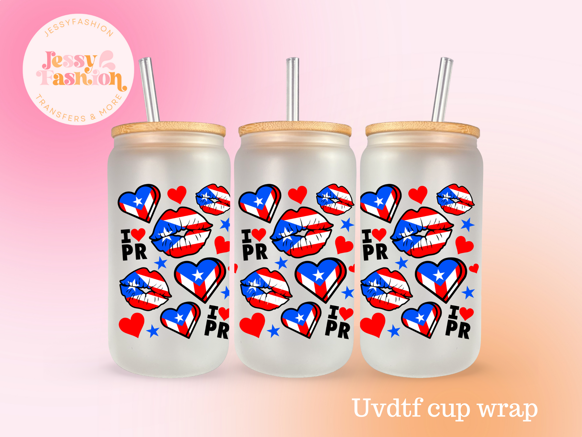 I Love Puerto Rico UV DTF CUP WRAP