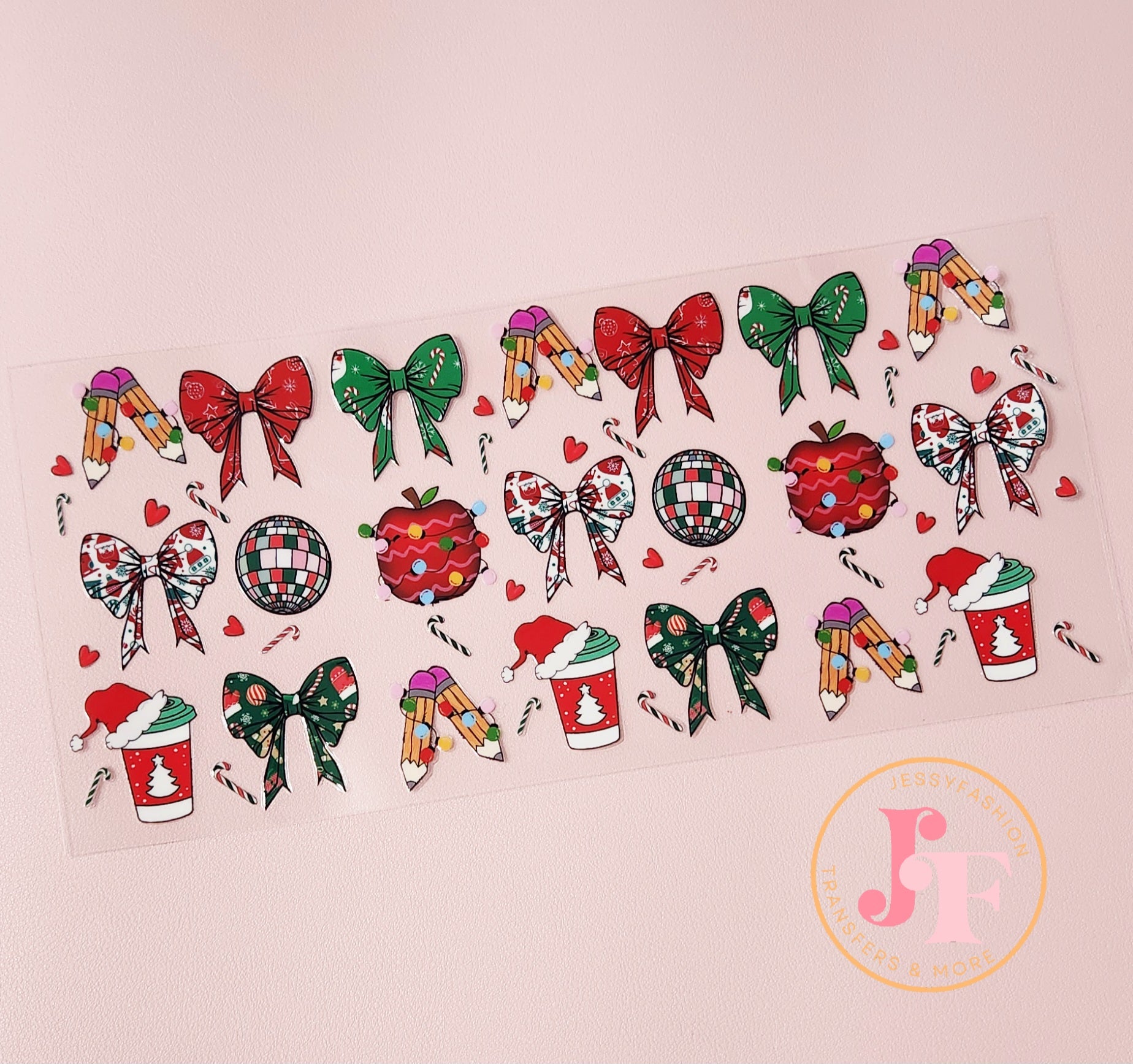 Christmas Teacher Red Bow UV DTF CUP WRAP