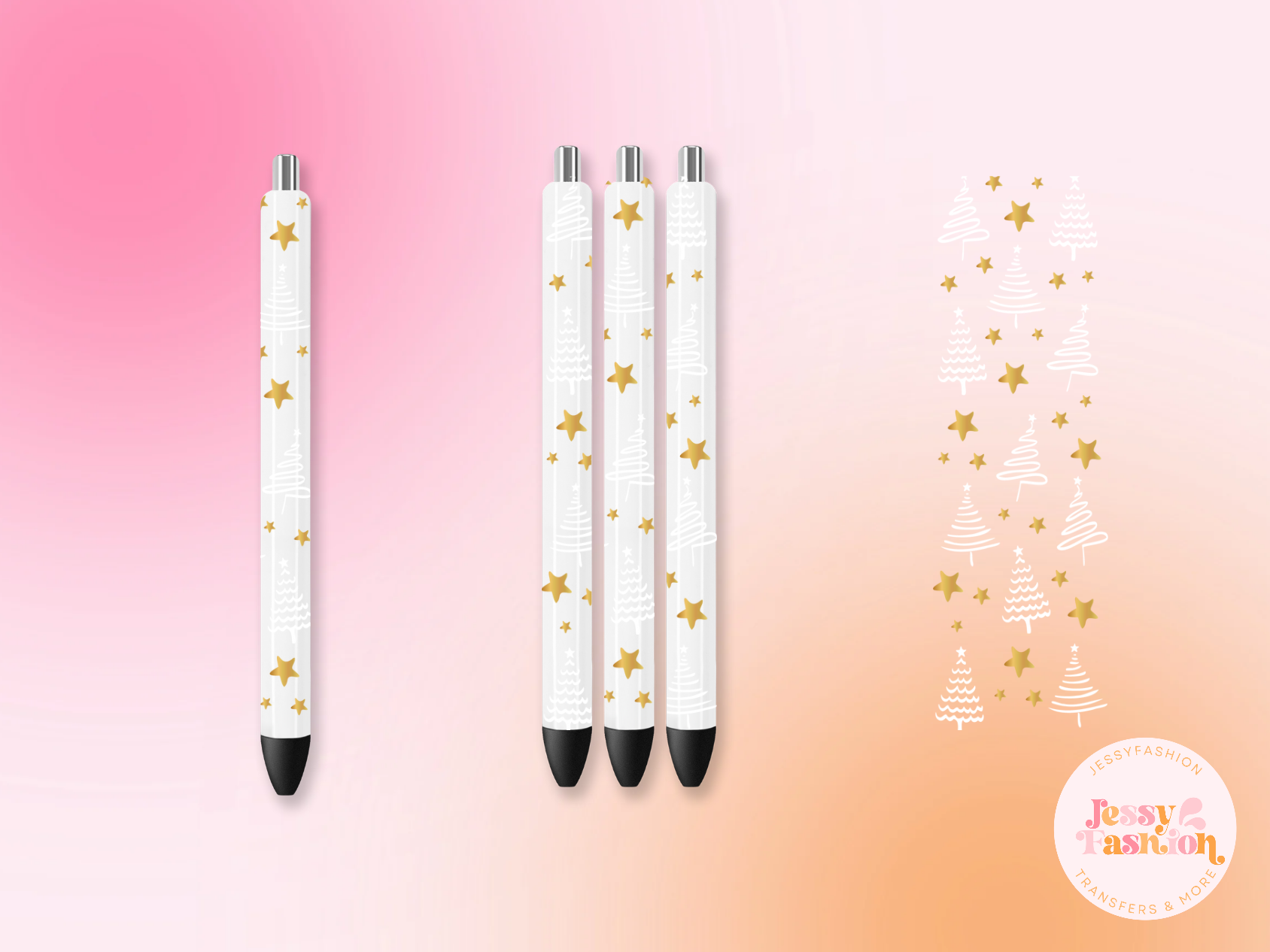 White and Gold Christmas Trees UV DTF PEN WRAP